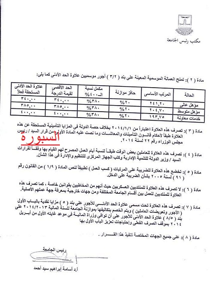 اخيرا..تطبيق الحد الادني من يناير الماضي علي العاملين بجامعة الاسكندرية ..والسبورة تنشر التفاصيل