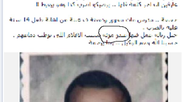 تداول بعض المعلمين صورة للمعلم قتيل طالب الاسكندرية علي صفحة التواصل الاجتماعي "فيس بوك"،متهمين عبده موتة بقتله