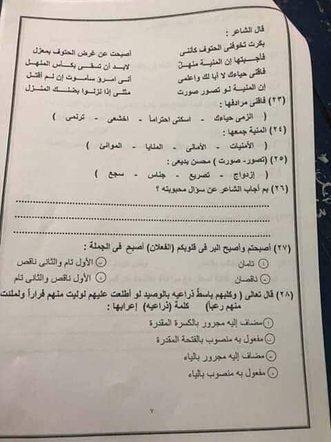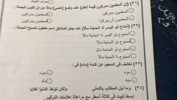 تداولت صفحات السوشيال ميديا صورة من الورقة الامتحانية لامتحان اللغة العربية للصف الأول الثانوى، الذي يؤديه الطلاب حاليا، قام بتصويرها أحد الطلاب بالجيزة، من داخل أحد اللجان الذي يجري بها الامتحان ورقيا.