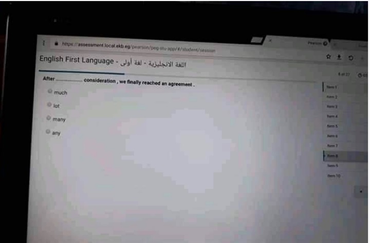 بعد مرور اقل من نصف ساعة على بدء زمن الامتحان تداولت صفحات السوشيال ميديا صورة من تابلت قام بتصويرها أحد الطلاب، لامتحان اللغة الأجنبية الأولي ، الذي يؤدوه الطلاب حاليا، من داخل أحد اللجان الذي يجري بها الامتحان إلكترونيا.