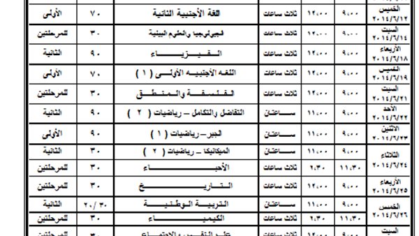 ننشر جدول امتحانات الثانوية العامة بالنظام القديم