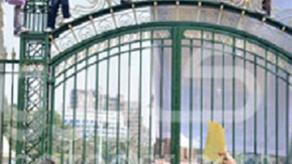 صعد طلاب الإخوان ابواب جامعة القاهرة، الباب الرئيسى للجامعة، واطلقوا الشماريخ والألعاب النارية أعلى الباب الرئيسى.