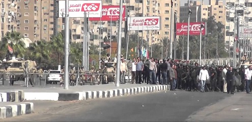 هتافات ضد رجال الأمن, معترضين على ما أسموه بـ"التدخل الأمني السافر في الجامعة". من جانبها, ردت قوات الأمن بإطلاق الطلقات التحذيرية والقنابل المسيلة للدموع لتفريقهم, ولم يتمكن الطلاب من الخروج إلى طريق النصر خارج الجامعة لتعطيل المرور, وتمكنت القوات من إعادتهم. وتسود حالة من الكر والفر بين قوات الأمن والطلاب المتظاهرين, فيما تشدد إدارة الجامعة على اتخاذ الإجراءات القانونية ضد من يثبت تورطه في أعمال شغب بالجامعة.