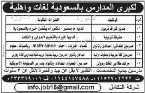 وظيفتك عندنا عاجل..لكبري المدارس بالسعودية جميع التخصصات الإثنين 28/أبريل/2014 - 07:30 م facebook twitter whats x facebook twitter rss feed عاجل..لكبري المدارس بالسعودية جميع التخصصات facebook twitter whats