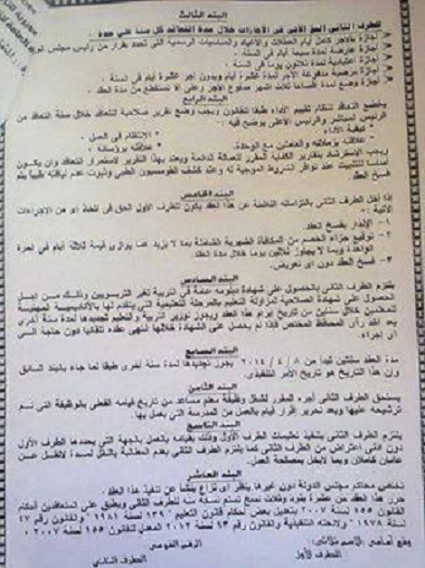 والسبورة تنشر صورة العقد الجدد الذي وقع عليه جموع المؤقتين " مؤهلات عليا "