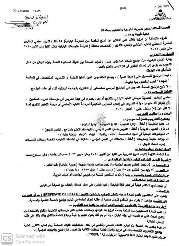 وافقت وزارة التربية والتعليم والتعليم الفني، على المنحة المقدمة من الحكومة اليابانية لتدريب معلمي المدارس المصرية، للمرحلة الابتدائية والمرحلة الثانوية.
