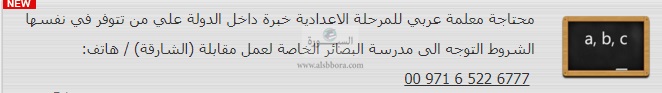 تعلن مدارس الشارقة عن وظائف جديدة للمعلمين والمعلمات وذلك وفقا لنص الإعلان التالي:-