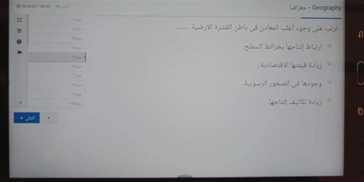 قامت عدد من صفحات السوشيال ميديا بتداول صورة من تابلت قام بتصويرها أحد الطلاب، لامتحان مادة الجغرافيا، الذي يؤدوه طلاب الصف الثاني الثانوي بالشعبة الأدبية حاليًا، من داخل أحد اللجان التي يجري بها الامتحان إلكترونيا.