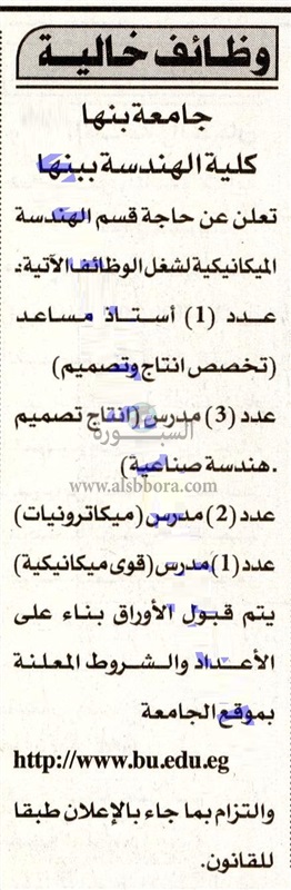 تعلن جامعة بنها عن وظائف جديدة لأعضاء هيئة التدريس في عدد من الكليات وفقا لنص الإعلان التالي:-