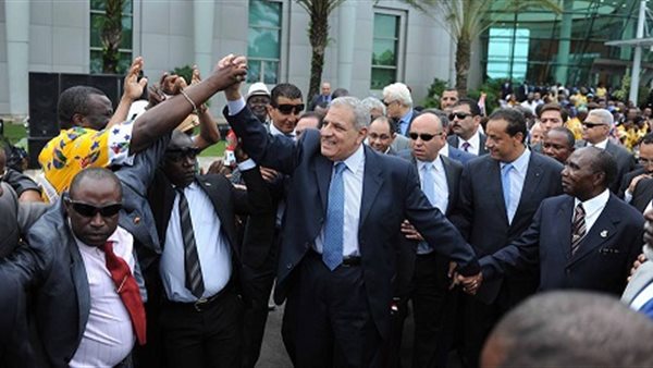 الإفريقية المميزة, حاملين صور رئيس الجمهورية أوبيانج وصور المهندس محلب, وترديدهم