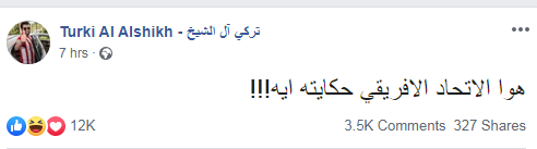 وكتب "آل الشيخ"، على صفحته على موقع التواصل الاجتماعي "فيس بوك" متسائلا: "هو الاتحاد الأفريقي حكايته إيه"، ليعود ويدون مرة أخرى معلنا اتصاله مع برئيس الاتحاد الأفريقي والاتفاق على لقاء معه.