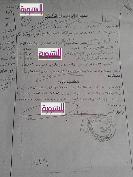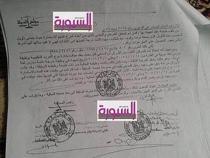 طالب جموع المعلمين بمختلف المحافظات بتنفيذ الحكم الصادر من المحكمة الإدارية بضم مدة التعاقد السابقة للمعلم المساعد المعين على الدرجة الثالثة، خاصة انه قد تم إعلان محافظ الإسكندرية ووزير التربية والتعليم ووزير المالية بتنفيذه