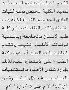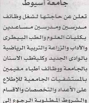جامعة اسيوط تطلب مدرسين مساعدين بكلياتها