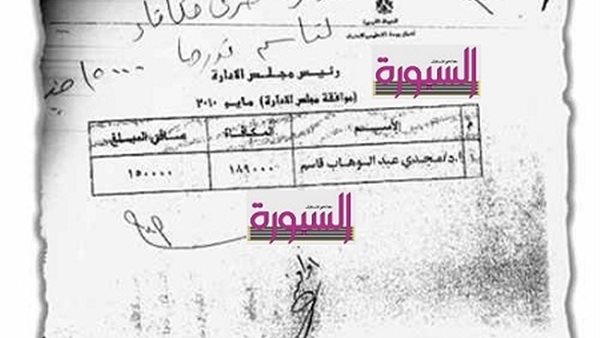والسبورة حصلت علي صورة لمستندات صرف لرئيس هيئة الجودة بحوالى 150000 جنية