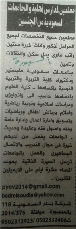 وظيفتك عندنا لمدارس وجامعات السعودية في نخصصات مختلفة الجمعة 23/مايو/2014 - 01:41 ص facebook twitter whats x facebook twitter rss feed لمدارس وجامعات السعودية في نخصصات مختلفة facebook twitter whats