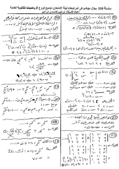 100 سؤال موضوعي في رياضيات الثانوية العامة ( الحلقة الاولي )