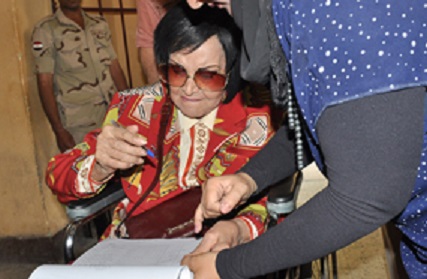 مديحة يسري بكرسي متحرك أمام لجنتها الانتخابية