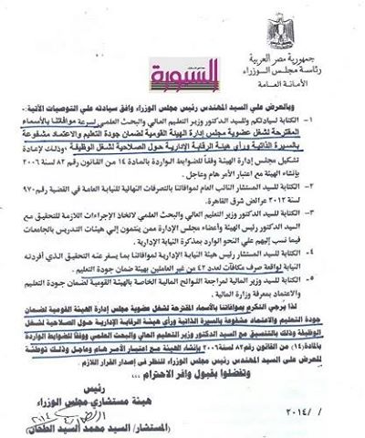 السبورة تنفرد بالتقارير الرقابية لمخالفات رئيس هيئة جودة التعليم المرسلة لأبو النصر