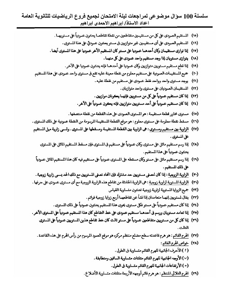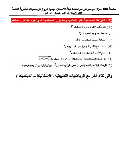 100 سؤال موضوعي في رياضيات الثانوية العامة ( الحلقة الرابعة )
