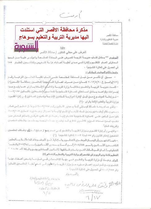 بالمستندات ..تعليم سوهاج تقرر عدم احقية المعلمين في العلاوة التشجيعبة