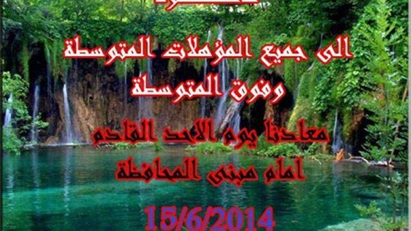 ينظم اصحاب المؤهلات المتوسطة وفوق المتوسطة والعمال بمحافظة الشرقية امام مديرية التربية والتعليم الاحد القادم 15/6/2014 للمطالبة بحقوقهم والتثبيت أسوة بالمؤهلات العليا