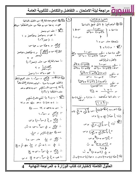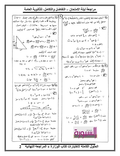 مراجعة ليلة الامتحان في التفاضل والتكامل والحلول الكاملة لاختبارات الوزارة