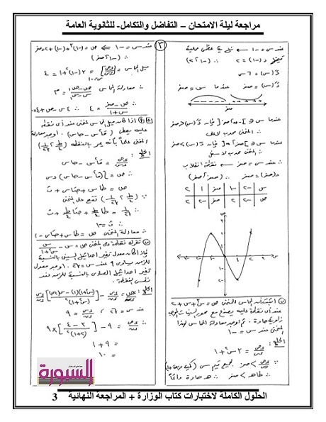 مراجعة ليلة الامتحان في التفاضل.. والتكامل والحلول الكاملة لاختبارات الوزارة