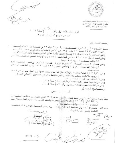 تقدم المواطن بدر محمد شتيوى من منطقة تامنيات المنيا ببلاغ الى رئيس النيابة الادارية ضدرئيس صندوق التامين على العاملين بالقطاع الخاص والعام امال عبد الوهاب وابراهيم عبد الشافى مدير عام الرقابة برئاسة الهئية واشرف على وخالد فتحى اعضاء الرقابة يحمل رقم 1059/29/6/2014 وقال بدر ان رئيس الصندوق قامت بنقلى من وظيفة مدير مكتب المنيا اول الى موظف بديوان عام المنطقة مشيرا ان القرار التى اصدرتة ليس نقلى فقط وانما تخفيض مستوى الوظيفه بسبب توصية غير صحيحة وباطلة من مديرعام الرقابة بالصندوق وتم عرضها على ريئس الصندوق وقد واقفت علية بنقلى قبل التحقيق معى واشار شتيوى فى البلاغ الذى قدمه قائلا كان يتعين على رئيس الصندوق احالة الملاحظات التى عرضت عليها ضدى للتحقيق ولكن هذا لم يحدث وبذالك قد صدر القرار بدون توقيع عقوبة من الجهة الادارية ما انه لم يصدر بشانى حكم من المحمكه التادبيبة مشيرا ان على الرغم من صدور القرار الظالم الا اننى قد خاطبت ريئس الصندوق تلغرافيا باحالتى الى التحقيق لكى يتبن لها ان ماعرض عليها كلام باطل ومغرض ولايختص به المكتب ولم يتم تنفيذ طلبى وهو حق من حقوقى واضاف ان قامت رئاسه الصندوق بطلب تقييم مدير المكتب من رئيس الادارة المركزية للمنطقة بالمنيا وقد تم التقييم ولم تواخذ به وبعد ذالك قام 55موظفا بمخاطبة رئيس الصندوق بالابقاء على مدير المكتب لما حققه من انجازات مملوسه على مدار سبع سنوات كما طلب منها زيارة المكتب للوقوف على ارض الواقع ومعرفة الحقيقة .. وطالب شتيوى من رئيس مجلس الوزراء ووزير التضامن الاجتماعى بانصافى ورفع الظلم والبطش عنى فنحن فى دولة قانون تدعم الكفاءات وليس اقصائها واضاف البلاغ انهاء اقصاء للكفاءات مما يترتب عليه تخريب فى موسسات الدوله .. السوال هنا هل جاء اقصاء المواطن كنوع من تصفيات الحسابات ام كان قرار صائب ام رئيس الصندوق تستقوى بوزيرة التضامن الاجتماعى الدكتورة غادة والى التى تعد من افضل الوزارء فى الحكومة