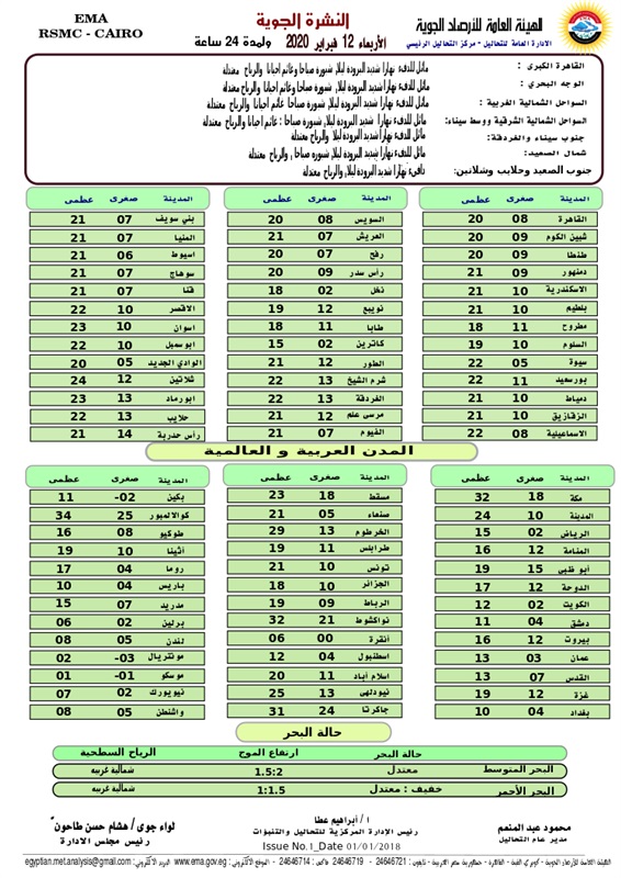 وناشدت الهيئة العامة للأرصاد الجوية، السائقين القيادة بهدوء على الطرق واتباع تعليمات المرور وتجنب السرعات الزائدة، موضحا أن درجات الحرارة العظمى تتراوح بين 16 و 17 درجة، لافتا إلى أنه بداية من اليوم الثلاثاء يشهد ارتفاع بمعدل درجة أو درجتين فى درجات الحرارة ليمتد هذا الارتفاع تدريجيا لنهاية الأسبوع.