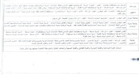 أماكن خالية للشعبة الأدبية بالمرحلة الثانية بكليات التربية النوعية بجامعات القاهرة والأسكندرية، وأسيوط، والمنصورة، والمنوفية، وجنوب الوادى، وأسوان وبنها والفيوم وكفر الشيخ، وكليات السياحة والفنادق بجامعات الأسكندرية، والمنضورة، وحلوان، والمنيا، وجنوب الوادى، والسادات،