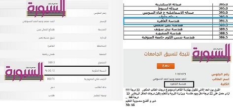 وقد حصلت السبورة علي نتيجة الطالب التي تؤكد ان مجموع درجاته 90.12% ولو بالفعل حصل علي المركز الاول في بطولة دولية كما نص القرار يكون مجموع درجاته 93.12% فقط ولن يستطيع دخول كلية الهندسة والتي اعلن الحد الادني لها 95.48%.
