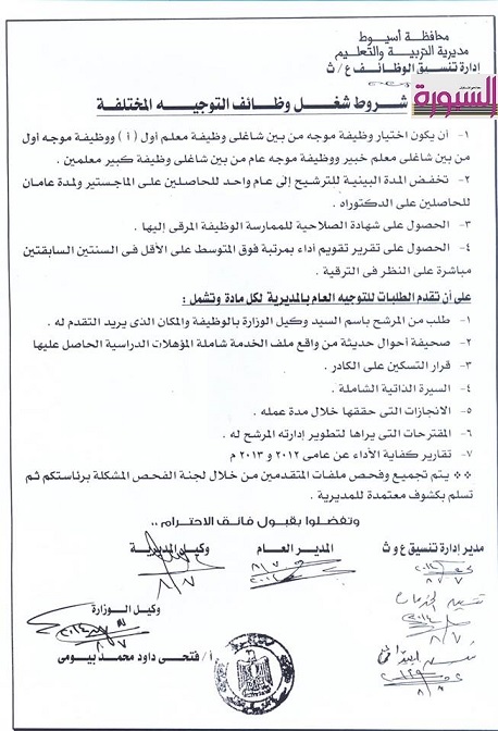 تعليم اسيوط تعلن عن حاجتها لشغل وظائف جديدة ..و"السبورة "تنشر الشروط