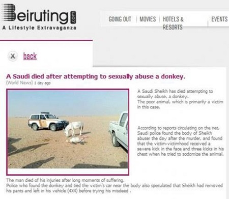 قال موقع "بيروتنج" بأن الشرطة تنبأت أن الرجل السعودي نزع سرواله قبل أن يغادر سيارته الدفع الرباعي، وحاول التعدي على الحمار، الذي دافع عن نفسه بركل مهاجمه عدة مرات متتالية، فأرداه قتيلًا.