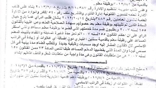 لماذا لا تتوحد الآراء والقرارات في وزارة التربية والتعليم ؟ وبالرغم من أن القرار ضم المدة بمحافظة دمياط مؤرخ بتاريخ قديم أي منذ العام السابق 2013 ،و يخص المعلمين المساعدين الذين تم نقلهم لوظيفة معلم بمحافظة دمياط و ضم المدة السابقة لهؤلاء المعلمين قبل التثبيت على وظيفة معلم