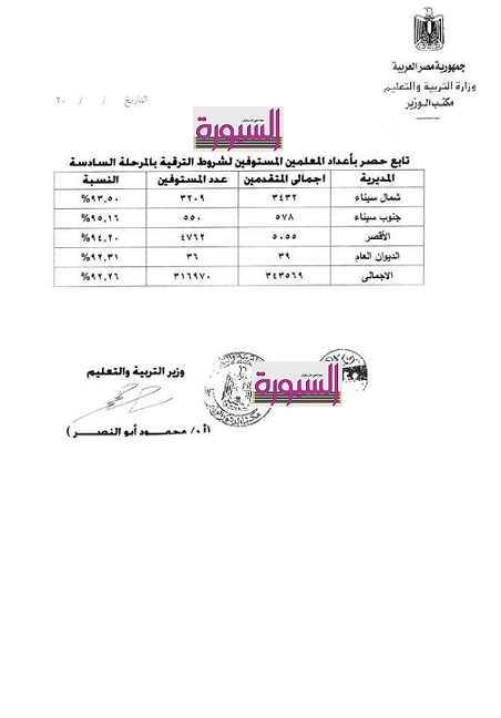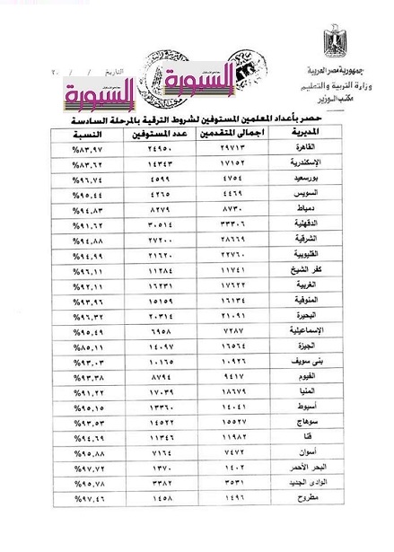 "السبورة " تنشر قرار ترقية 316 ألف معلم على مستوى الجمهورية (المرحلة السادسة )