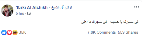 وكتب آل الشيخ عبر صفحته الرسمية على موقع فيس بوك: "في ضهرك يا خطيب.. في ضهرك يا أهلي".