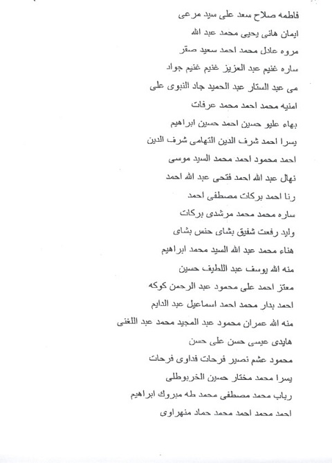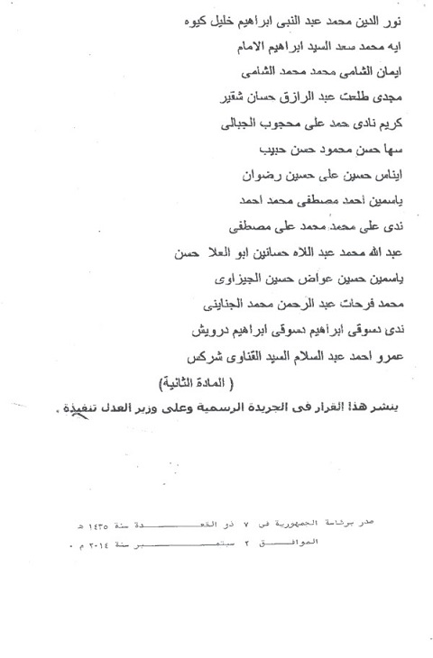 صرح السفير إيهاب بدوي، المتحدث الرسمي باسم رئاسة الجمهورية بأن الرئيس عبد الفتاح السيسي أصدر قراراً جمهورياً بتعيين السيدات والسادة المرفقة أسماؤهم في وظيفة معاون للنيابة الإدارية.