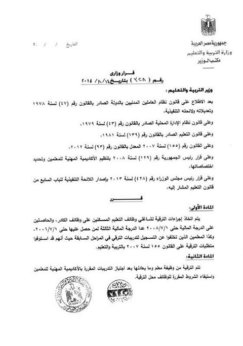 اضافوا وبعد عدة اشهر صدر قرار الدكتور محمود ابوالنصر وزير التربية والتعليم برقم "328" بتسكين المعلمين على وظائف الكادروعددهم يصل الى 17000 معلم بالاسكندرية ومن هنا حدث وان اعربت المديرية الى اى قرار تستند ولم يتم تسكين من صدر لهم قرار 29 على وظائف الكادر والمديرية ترفض تسكين هؤلاء وفقا لقرار 328