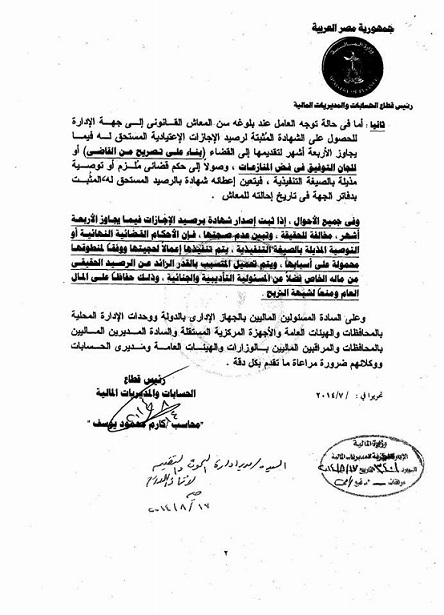 "السبورة "تنشر القرار الدوري " 57 " لسنة 2014 والخاص بتنظيم صرف المقابل النقدي لرصيد للاجازات الاعتيادية فيما لايزيد عن لا يجاوز الاربعة شهور