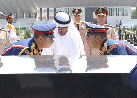 وفى تقليد أصيل يعكس عمق الروابط التاريخية بين الشعبين المصرى والإماراتى قام ولى عهد أبوظبى بزيارة النصب التذكارى لشهداء القوات المسلحة بمدينة نصر يرافقه اللواء أح توحيد توفيق قائد المنطقة المركزية العسكرية وعزفت الموسيقات العسكرية السلام الوطنى لدولة الإمارات الشقيقة والسلام الوطنى لجمهورية مصر العربية .