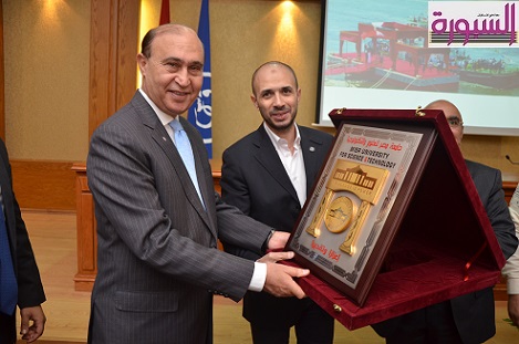 استقبل الوفد الفريق مهاب مميش رئيس هيئة قناة السويس والذى قام بشرح وافى عن مشروع قناة السويس الجديدة واهميته فى تنشيط التجارة العالمية مما يعود بالنفع على جموع الشعب المصرى ثم تبادل كلا من السيد الاستاذ رئيس مجلس الامناء والسيد الفريق درع الجامعة ودرع هيئة قناة السويس ، خاصة ان مصر تنتظر الكثير منا خلال المرحلة الحالية