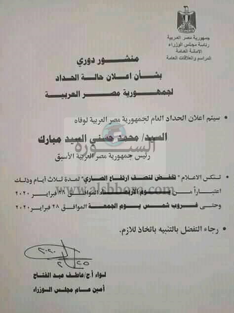 عاجل| ننشر قرار مجلس الوزراء بإعلان حالة الحداد في جمهورية مصر العربية اعتبارا من اليوم.. "مستند"