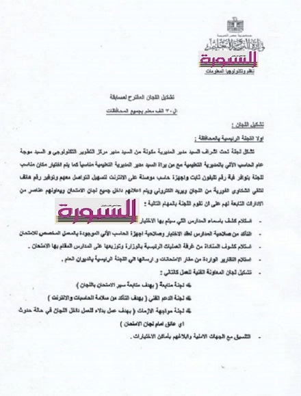 تضمنت الورقة الثانية والثالثة من الفاكس الذي تنفرد " السبورة" بنشر نصه ، تشكيل اللجان المقترحه للمسابقة بجميع المحافظات ، والتعليمات الخاصة بلجان ادارة الاختبارات بمقر عقد الاختبارات