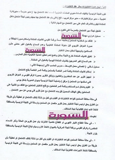 ونبهت علي انه في حالة حدوث اي عائق امام الامتحان سيتم عمل تقرير فني من اللجنة وسيتم البت فيه خلال 48 ساعة من وصول التقرير الي غرفة العمليات المركزية بالديوان العام بالطرق المتبعة