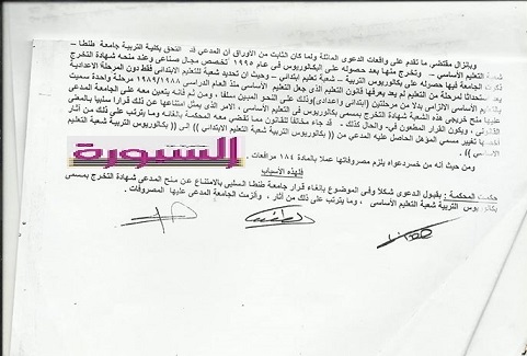 "السبورة " تنشر حكم تاريخي في تغيير مسمى الشهادة الجامعية من تعليم أبتدائى الى تعليم أساسى