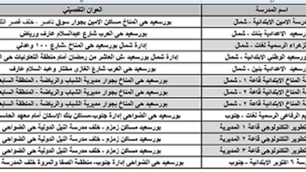 اماكن اللجان التى يجري بها امتحانات الـ30 الف معلم الاسبوع المقبل ببورسعيد