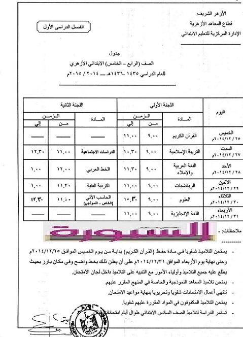 ننشر .. جدول امتحانات المرحلة الابتدائية الازهرية