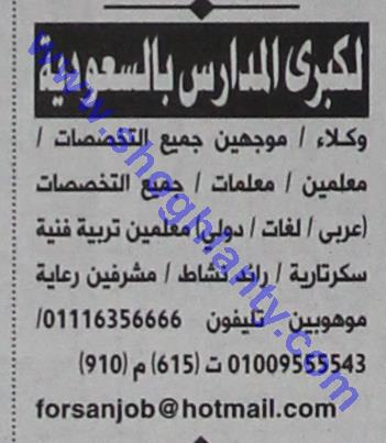 عاجل..معلمون و موجهون في جميع التخصصات لكبري مدارس السعودية