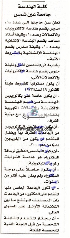 أعلنت جامعة عين شمس عن وظائف جديدة لأعضاء هيئة التدريس "من معيد إلي أستاذ" علما بأن أخر موعد للتقديم غدا وذلك وفقا لنص الإعلان التالي:-