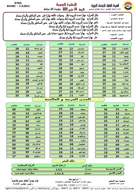 وحذر مدير مركز التحاليل والتنبؤات بالهيئة العامة للأرصاد الجوية، المواطنين بشدة من تخفيف الملابس تجنبا للإصابة بنزلات البرد خصوصا في تلك الفترة التي تشهد انتشارا لفيروس كورونا في أنحاء العالم، موضحا أن استقرار الطقس يصاحبه شبورة مائية كثيفة في الصباح الباكر خاصة بالمناطق الزراعية والقريبة من المسطحات المائية.